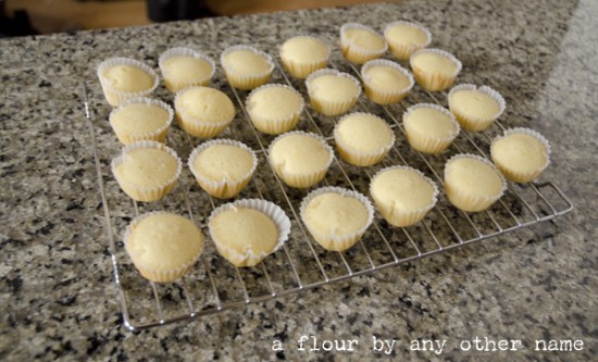 You can, of course, make a full-sized Boston Cream Pie, but there are benefits to the small ones. First of all, they are much cuter and more of a showstopper, presentation-wise. Secondly, you can eat lots and lots of them because they are so extremely tiny. Each one is about the quarter of the size of a muffin.