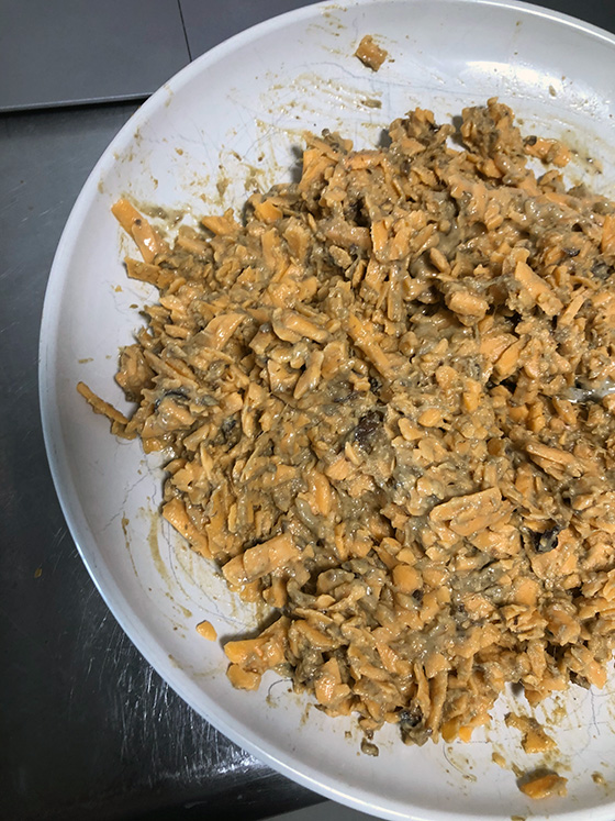 To recreate it, I took a tin of smoked oysters (85 grams), and I grated a 400 gram package of old cheddar cheese. I added some milk to moisten it. The trick with the milk is that too much will make it melt off the toast, but a little bit of milk helps it spread. (And creates those lovely brown spots on the toasts.) I used gluten free bread I had in the freezer.